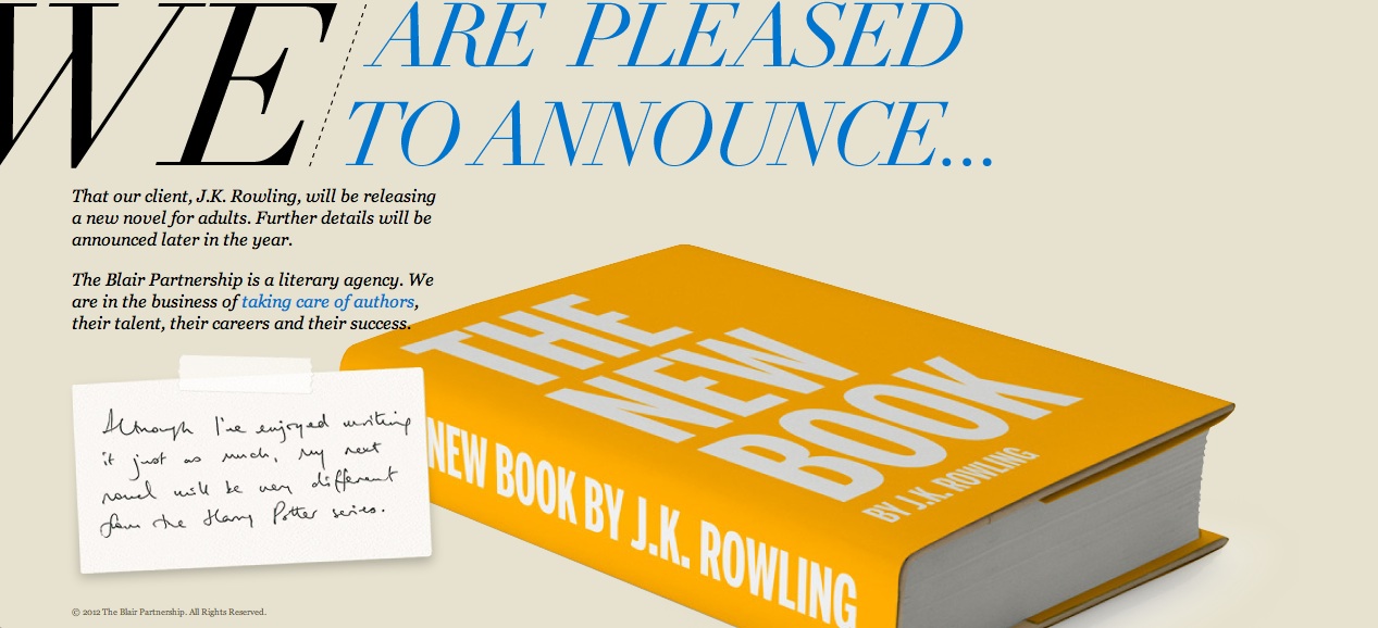 jk-rowling-new-book Index ID: — Publication date: Only the beginning of this text can be displayed here for research purposes. I apologize! Previous writing: « New novel for adults announcement Next writing: